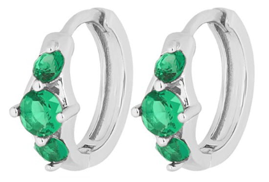 Orecchini ad anello con punti luce verde smeraldo.