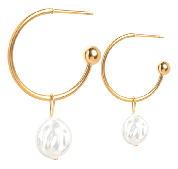 Orecchini placcati in oro dalla forma a cerchio sottile e con pendenti simil perla.