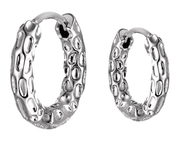 Orecchini in acciaio dalla forma a cerchietto con trama del metallo incisa ad arte.