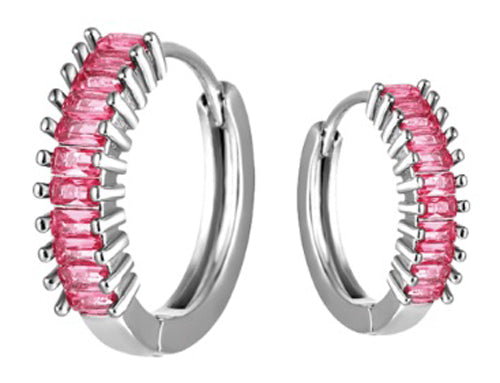 Orecchini in acciaio chirurgico con zirconi rosa.